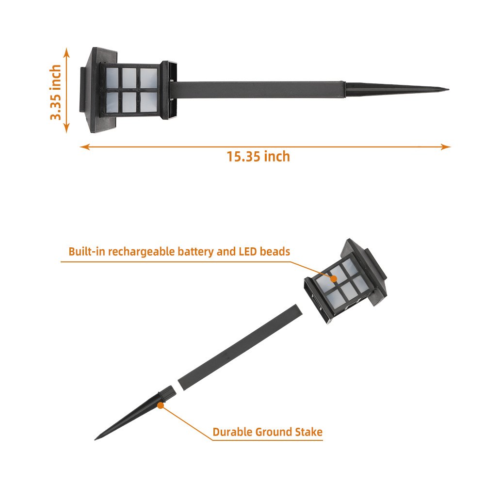 Powered by solar, the 6pcs White LED Solar Lantern offers a green way to light up your walkway or garden path. With a built-in solar panel at the top, it is completely wireless and maintenance free. The light automatically turns on at nightfall and turn off to charge in the daytime. Sturdy construction is fully weatherproof, allowing it to work all year around. It is the perfect choice for outdoor illumination and creating a warm and relaxing ambiance in your backyard. Vintage lantern design blends in well with any outdoor spaces.