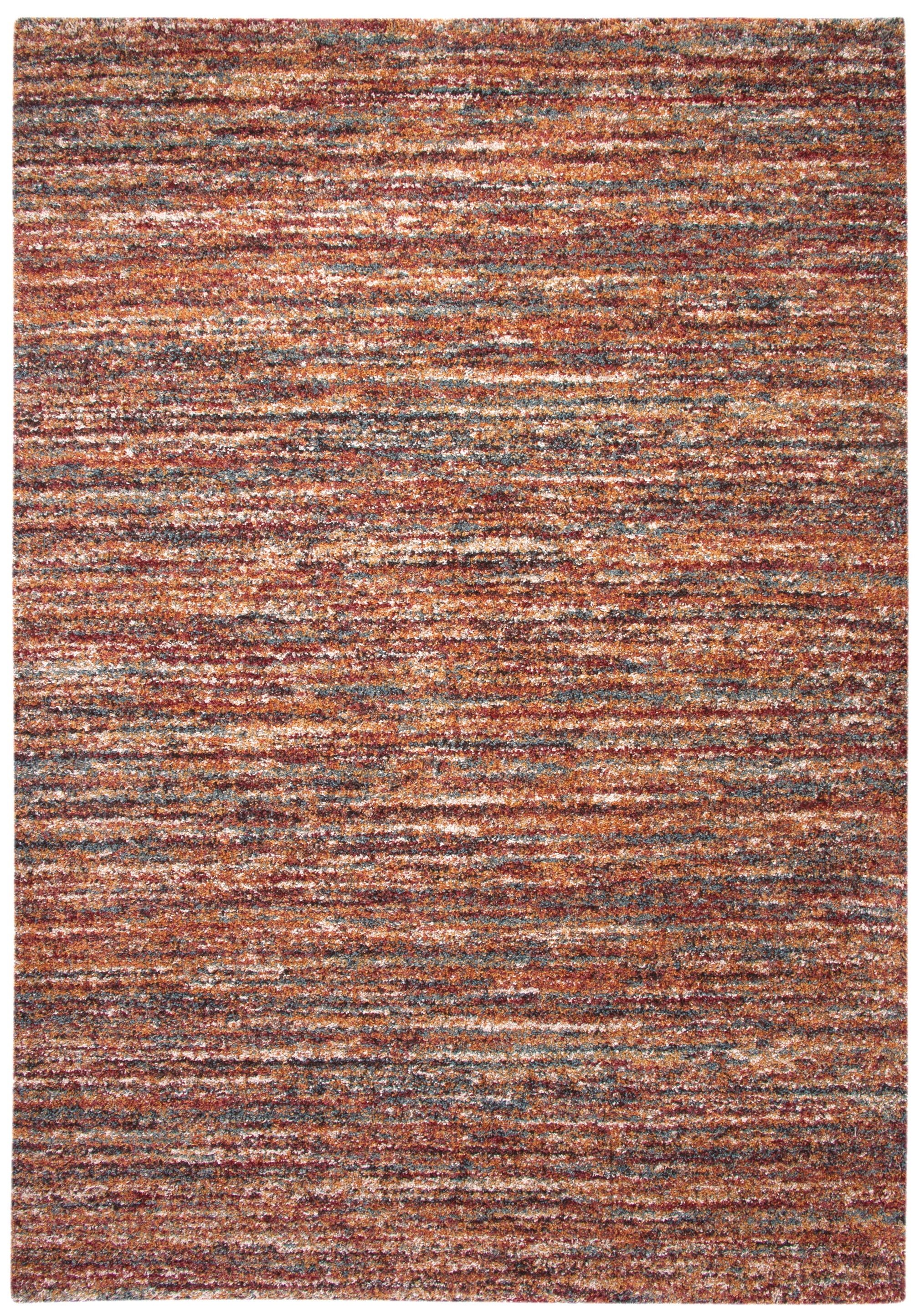 The Zira Red Multi-Color Area Rug is machine-woven using heatset frise yarns and features a durable jute backing. The neutral colors and plush thickness provide a trendy design that adds a global feel to any room in your home.Materials: 100% Olefin Heatset Frise2520 features machine-woven Olefin yarn in a multi-color striped patternFeatures a durable jute backingPlush PileTransitional style will blend with many decorsContains Latex: YesSize (ft/in): 7'10" x 10'10"Care Instructions: Vacuum your rug regularly. Some initial shedding of the wool pile is normal and will not affect the life of the rug. Clean spills immediately by blotting any liquid with a clean, dry, un-dyed cloth. If heavily soiled, rugs may be cleaned professionally. Do not pull any loose ends; any frayed edges can be trimmed with scissors, if needed. Use a rug pad for even wear, increased protection, and to prevent slippage.